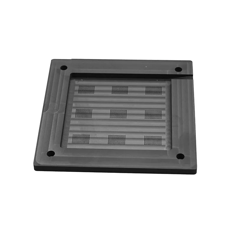 Grafitkugleplaceringsarmaturer har flere nøglefunktioner: 1) Høj renhed (grafit ≥99,5%, fri for ionkontamination); 2) Høj fladhed (planhed ≤0,002 mm/m, Ra≤0,4 μm); 3) Kugleplaceringspræcision på mikronniveau (kuglediameter ±0,025 mm, kugleafstand ±0,05 mm); 4) Høj temperatur modstand (stabil ydeevne ved 300°C); 5) Fremragende termisk styring (ensartet varmeledningsevne, reducerer termisk stress).